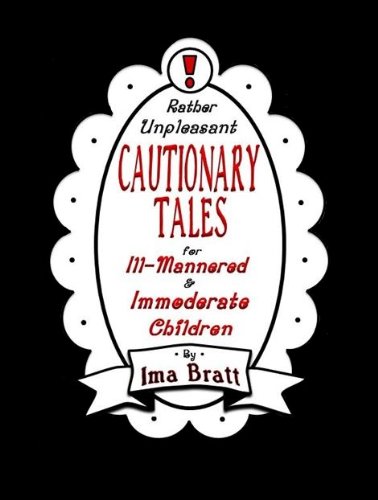 Fear Not Dear Readers! “Rather Unpleasant Cautionary Tales for Ill-Mannered and Immoderate Children” is NOT your typical, boring, ho-hum, run-of-the-mill, dusty volume of stuffy old morals. No Siree Bob! ( or Jane or Eddie or…well, you get the picture ). Don’t let the somber title fool you, because although this book is admittedly rather unpleasant, it is also rather hilarious. Misbehaved children have been put on notice by Ima Bratt’s witty, wickedly funny poems which tell the "hypothetically true" stories of five ill-fated youths and the humorous ( if unfortunate ) consequences of their "Ill-mannered and Immoderate" behavior. A fun read for kids and adults alike. So what are you waiting for people? Download it already!